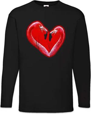 Flamingo Heart II Herren Langarm T-Shirt Schwarz Größe L