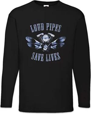 Loud Pipes Save Lives Herren Langarm T-Shirt Schwarz Größe 2XL