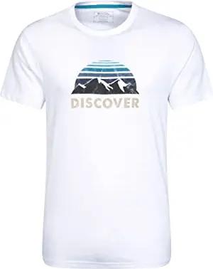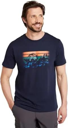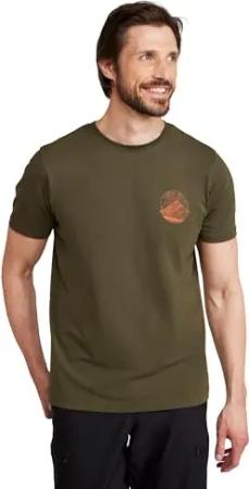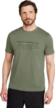 Mountain Stripe T-Shirt mit Grafikdruck für Herren – Leichtes Baumwoll-T-Shirt, Atmungsaktives Material, Lässig, Bequem – Frühling, Sommer, Outdoor Khaki X-Small