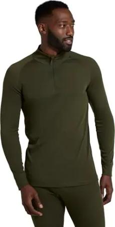 Talus Herren Langarm Oberteil, Runde Halsausschnitt & Reißverschluss - Ski Baselayer, Unterhemd Funktionsunterwäsche, Thermounterwäsche, Winter Khaki (Reißverschluss am Hals) Large