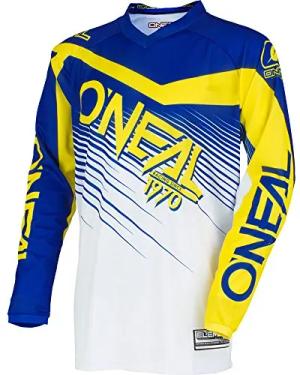 | Motocross-Jersey Langarm | MX Enduro | Gepolsterter Ellbogenschutz, V-Ausschnitt, atmungsaktiv | Element Jersey Racewear | Erwachsene | Blau Gelb | Größe M