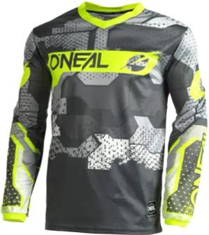 | Motocross-Shirt langarm | Kinder | MX MTB Mountainbike | Leichtes Material, ergonomischer Slim Fit Schnitt für perfekte Passform | Element Youth Jersey Camo V.22 | Grau Neon-Gelb | XL