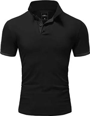 Herren Poloshirt Basic Kontrast Stickerei Kurzarm Polohemd T-Shirt 5102 Schwarz 3XL