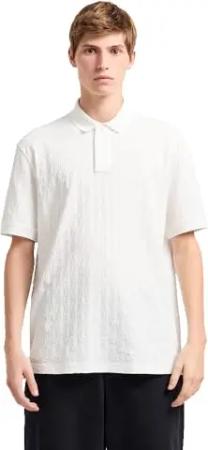 Herren Ax Stacked Logo Cotton Piquet Zip Up Polo Shirt, Off White, XL EU