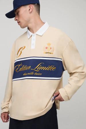 Besticktes Oversize Rugby-Poloshirt - Beige - L, Beige