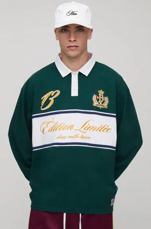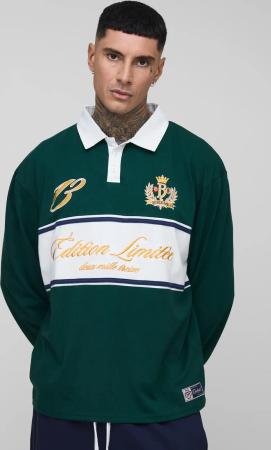 Besticktes Oversize Rugby-Poloshirt - Grün - XL, Grün