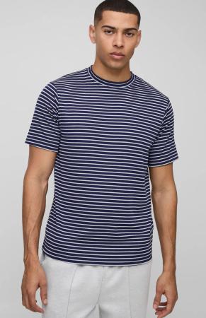Strukturiertes gestreiftes T-Shirt - Blau - S, Blau
