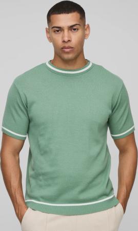 Gestricktes Muscle-Fit T-Shirt - Grün - XS, Grün