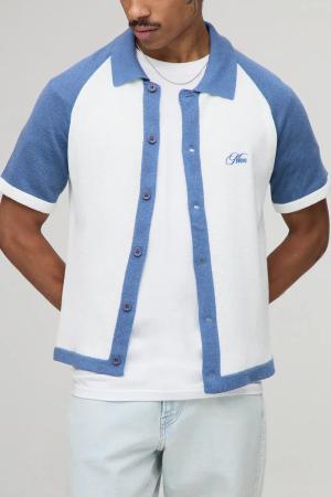 Kastiges besticktes Raglan Colorblock Hemd - Weiß - L, Weiß