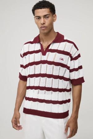 Kastiges gestreiftes Oversize Man Poloshirt - Burgund - S, Burgund
