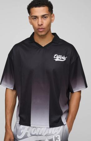 Langärmliges kastiges Oversize Fußball-Poloshirt - Grau - S, Grau