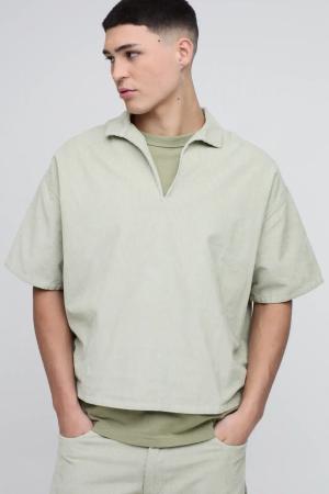 Kastiges Oversize Cord Poloshirt mit Acid-Waschung - Grün - L, Grün
