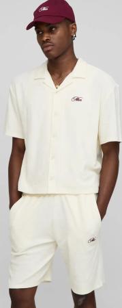 Kastiges Oversize Frottee-Hemd & Shorts mit Man-Stickerei - Ecru - S, Ecru