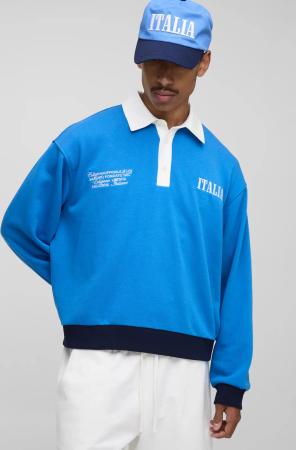 Kastiges Oversize Rugby-Poloshirt mit Italia-Stickerei - Grau - 2XL, Grau