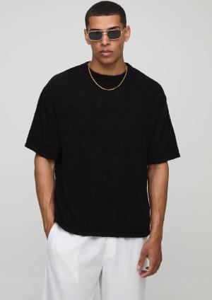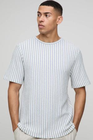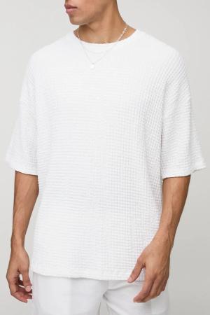 Strukturiertes Oversize Jacquard T-Shirt in Knitteroptik - Weiß - S, Weiß