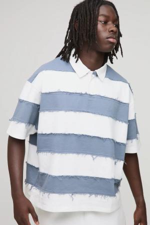 Kastiges zerrissenes Oversize Rugby-Poloshirt mit kurzen Ärmeln - Blau - L, Blau