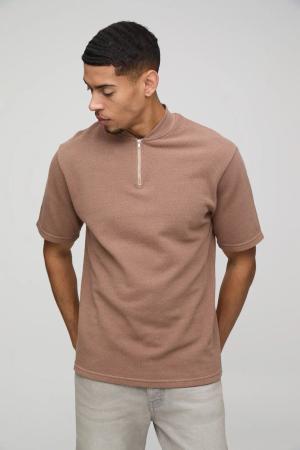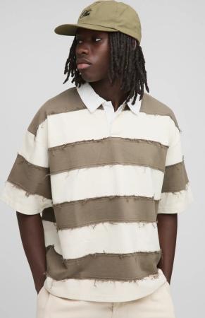 Kastiges zerrissenes Oversize Rugby-Poloshirt mit kurzen Ärmeln - Braun - XS, Braun