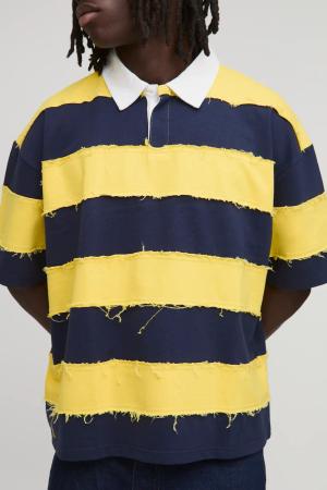 Kastiges zerrissenes Oversize Rugby-Poloshirt mit kurzen Ärmeln - Gelb - XS, Gelb