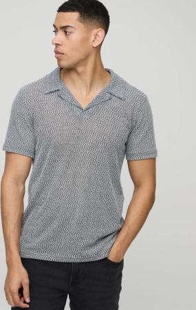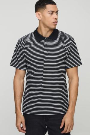 Geripptes Oversize Jacquard Poloshirt - Schwarz - S, Schwarz