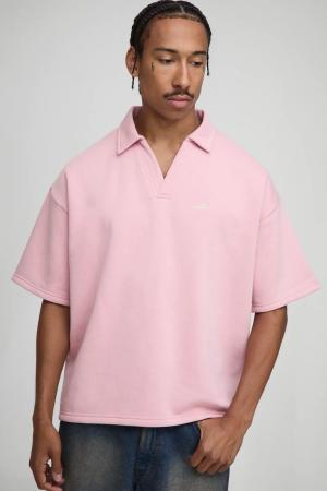 Kurzärmliges kastiges Oversize Rugby-Poloshirt mit B-Stickerei - Rosa - L, Rosa