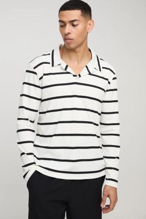 Langärmliges geripptes Poloshirt mit Streifen - Weiß - S, Weiß