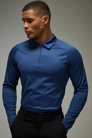 Man Active langärmliges Golf-Poloshirt - Blau - S, Blau