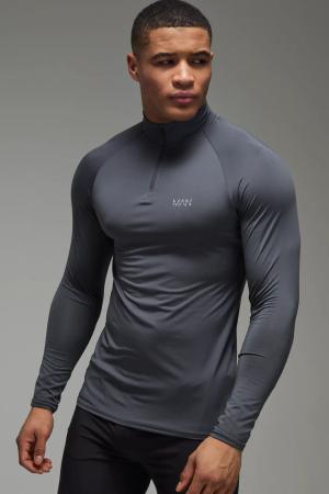 Man Active Muscle-Fit Raglan Oberteil mit 1/4 Reißverschluss - Grau - XXL, Grau