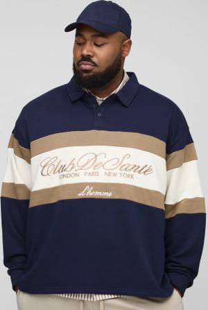 Plus besticktes Oversize Rugby-Poloshirt - Blau - 2XL, Blau