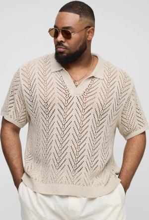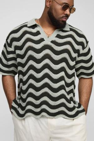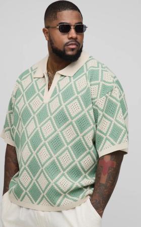 Plus gehäkeltes Polo-Shirt - Grün - 2XL, Grün