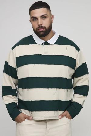 Plus kastiges zerrissenes langärmliges Oversize Rugby-Poloshirt - Grün - 2XL, Grün