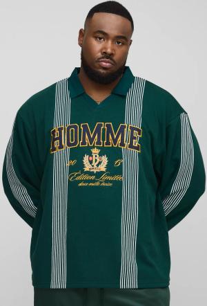 Plus Oversize Homme Rugby-Poloshirt mit Applikation - Grün - 2XL, Grün