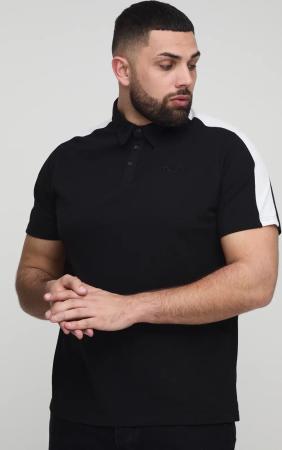 Plus Slim-Fit Man Pique Colorblock Poloshirt - Schwarz - 2XL, Schwarz