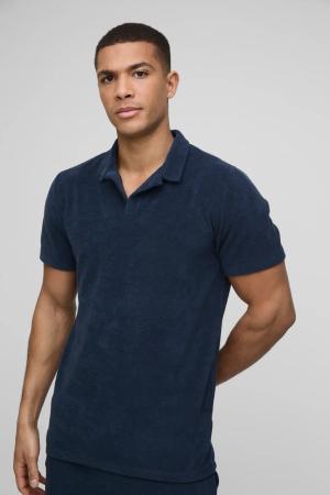 Slim-Fit Frottee Poloshirt - Blau - S, Blau