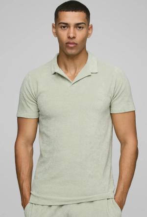 Slim-Fit Frottee Poloshirt - Grün - S, Grün
