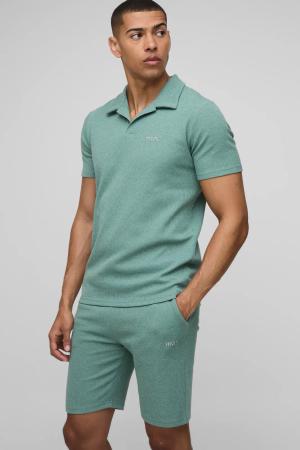 Slim-Fit Man Poloshirt & Shorts in Waffeloptik - Grün - S, Grün