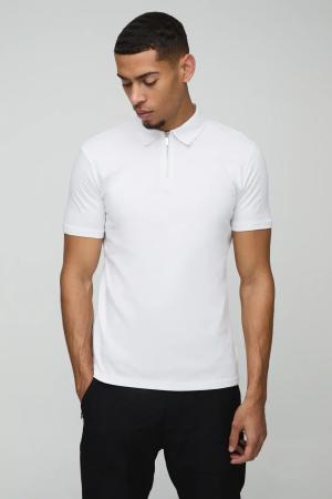 Slim-Fit Poloshirt mit Reißverschluss - Weiß - S, Weiß