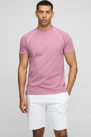 T-Shirt mit Kontrast-Paspeln - Malve - S, Malve