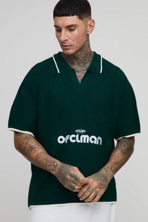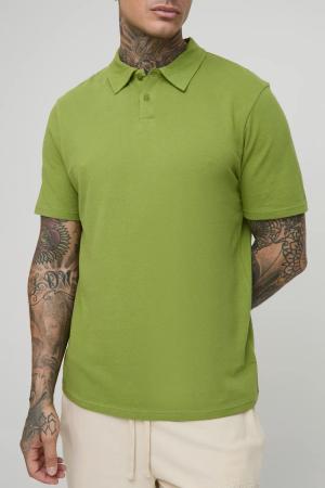 Kastiges geripptes Oversize Man Poloshirt - Grün - L, Grün