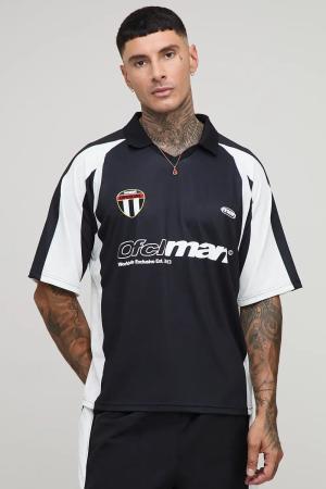 Kastiges gestreiftes Oversize Sport-Poloshirt mit Official-Applikation - Schwarz - S, Schwarz