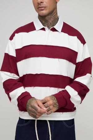 Tall langärmliges kastiges zerrissenes Oversize Rugby-Poloshirt - Burgund - 2XL, Burgund
