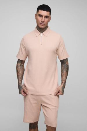 Tall Poloshirt & Shorts in Waffeloptik - Rosa - S, Rosa