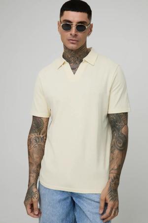 Kastiger Raglan Italia Strick-Poloshirt mit V-Ausschnitt - Ecru - L, Ecru