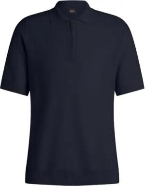Herren H-Pitton 145 Slim-Fit Poloshirt aus strukturierter Baumwolle mit Kontrastkragen Dunkelblau M