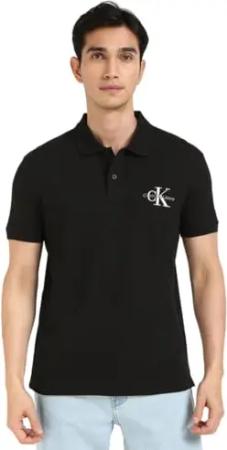 Herren Poloshirt Kurzarm Monologo Regular Fit, Schwarz (Ck Black), M
