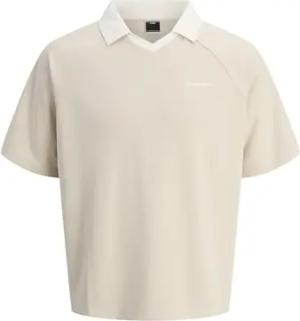 Herren Slim Fit Polo Shirt JJEPAULOS Uni Sommer Hemd Kragen Kurz Arm Basic Pique Cotton, Beige-3, XL