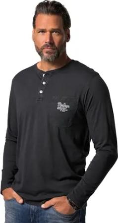 Herren große Größen Übergrößen Menswear L-8XL Henley, Langarm, Knopfleiste, Flammjersey