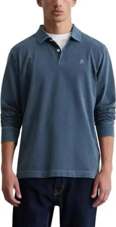 Marc OߴPolo Herren Langarm-Poloshirt mit Logo-Stickerei Regular Fit, Blau (Moon Stone), S