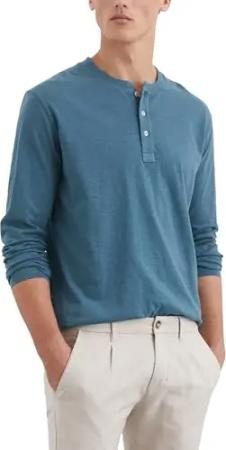 Herren Langarmshirt aus Bio-Baumwolle mit kurzer Knopfleiste, Blau (Storm), S