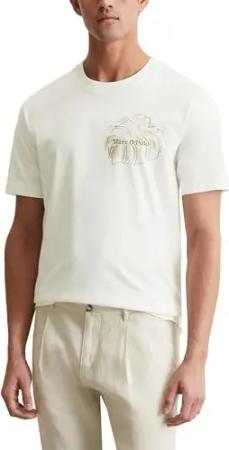 Herren T-Shirt mit Rücken-Print Relaxed Fit, Cremefarben (Egg White), M
