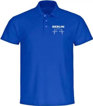 Poloshirt - Berlin blau - Herzschlag - Druck weiß - Polo Größe 3XL blau